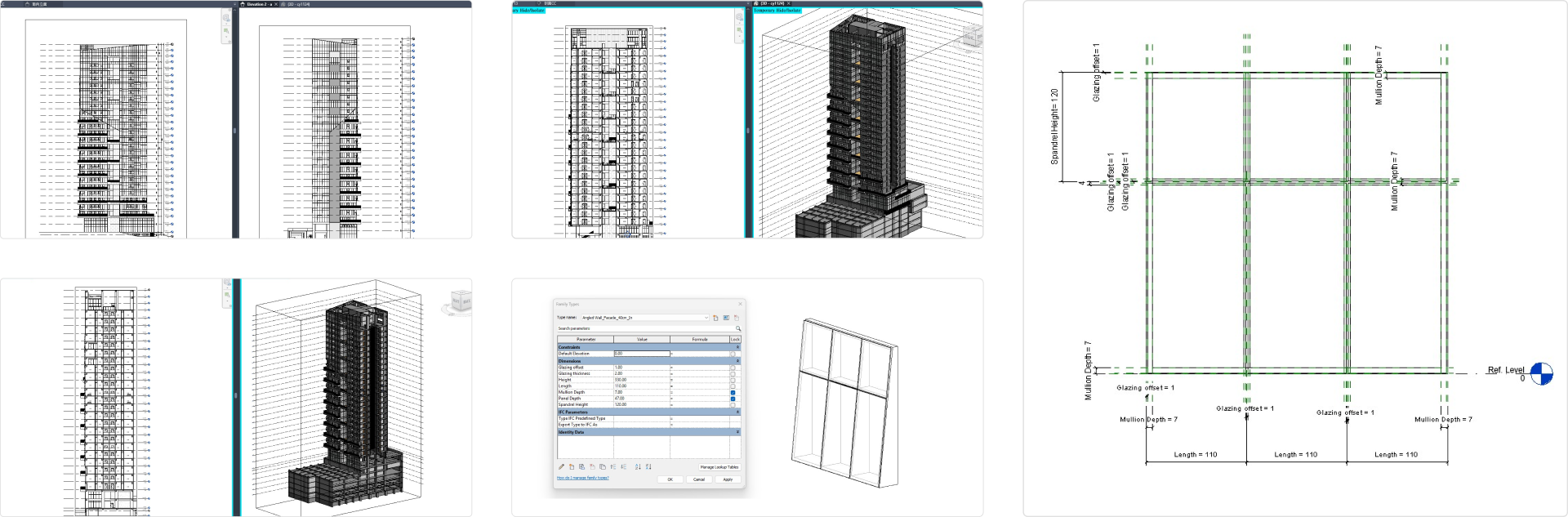 可設定 尺寸、材質、可見性、型式(Type)修改參數即可同步更新所有實例,提高設計效率、減少人為錯誤,可在不同專案中重複使用,確保一致性;單一模型同步產出 平面、立面、剖面、3D、數量表,任一處修改即時更新所有圖面